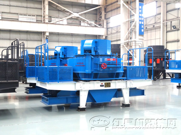 沖擊式破碎機(jī)是利用沖擊原理進(jìn)行碎礦的,工作時(shí),固定在主軸上的轉(zhuǎn)子在電動(dòng)機(jī)驅(qū)動(dòng)下按一定方向做高速旋轉(zhuǎn)運(yùn)行。當(dāng)物料從進(jìn)料斗落入到筒體內(nèi)之后,首先受到上轉(zhuǎn)子的副板錘沖擊,受到?jīng)_擊的物料以很高的速度沿轉(zhuǎn)子的切線方向拋向反擊板而產(chǎn)生撞出,物料在反擊板上的斜齒齒面及重力作用下,又沿斜下方向返回到轉(zhuǎn)子體外圓周與反擊板之間(即破碎腔),物料再次受到急速旋轉(zhuǎn)的主板錘沖擊后又被拋向反擊板,并繼續(xù)重復(fù)該過程。由于物料在破碎腔內(nèi)受到板錘和反擊板的周而復(fù)始的沖擊,以及物料塊之間的相互撞擊,這就使物料沿其自然節(jié)里面、層里面發(fā)生破碎。當(dāng)破碎后的物料粒度小于第一級(jí)轉(zhuǎn)子的排料間隙時(shí),物料在重力作用嗲進(jìn)入第二級(jí)轉(zhuǎn)子的破碎腔。第二級(jí)破碎過程與第一級(jí)相同,所不同的是第二級(jí)轉(zhuǎn)子的線速度比第一級(jí)更高,物料所受到的沖擊力更大,因此,可使物料破碎得更細(xì)小。當(dāng)物料破碎到預(yù)期成品粒度后,便從出料口排出。